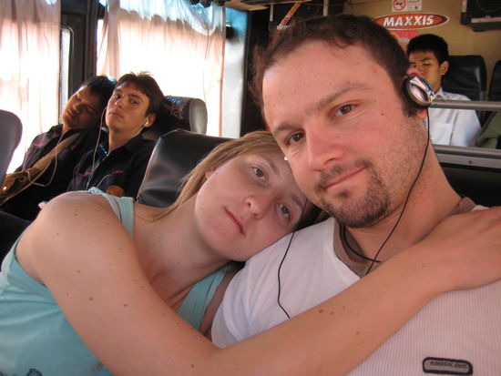 So, wo waren wir stehen geblieben. Ach ja Wecker stellen. Da Melanie den brillianten Einfall hatte ihr Handy auf deutscher Zeit zu lassen (da 6 Stunden zurueck rechnen ja so schwer ist) hat sie auch den Wecker nach deutscher Zeit gestellt. Ergo haben wir natuerlich verschlafen! Als wir dann so gegen 0930 endlich aufgewacht sind war der Bus, wo auch immer der abgefahren waere,natuerlich laengst weg. Also haben wir den Guesthouse Besitzer gefragt wie wir anderweitig nach Ko Chang kommen. Er bestellte uns ein Taxi welches uns an einer Hauptstrasse absetzte an der wir einfach auf einen Linienbus warten sollten. Nach 10 Minuten kam dann auch schon einer den wir durch Handsignal anhielten. Als wir dann schon 10 Minuten unterwegs waren und ihm im Reisefuehrer das thailaendische Wort fuer Ko Chang zeigten, sagte er das wir in die falsche Richtung fahren wuerden. Also wieder angehalten auf die andere Strassenseite gelaufen und dort wieder gewartet. Nach weiteren 30 Minuten kam dann ein Bus auf dem Bangkok-Rayon stand. Da das unsere Richtung war stiegen wir einfach ein. Dem Kassierer haben wir gesagt das wir nach Trat, der Ort von dem aus die Faehre geht, wollen. Er verstand uns anscheinend und kassierte 200 Bath pro Person was bei der Strecke auch OK gewesen waere. Als der Bus dann nach 2 Stunden in Rayong ankam ,sollten alle aussteigen, auch wir! Melanie hatte unseren Fotoapperat an den Vordersitz geknotet. Da das Aussteigen etwas hektisch war, haben wir ihn dort natuerlich beide vergessen. Kurz bevor ich ausstieg schaute ich durch Zufall nochmal zurueck und sah das der Kassierer an unserem Sitz rumfummelte. Da fiel mir unsere Kamera wieder ein. Als ich den Kassierer darauf ansprach stellte der sich erst mal dumm! Nachdem ich etwas Druck machte zog er sie auf einmal aus der Hosetasche. Also ... beim Fahrpreis beschissen und die Kamera fast noch geklaut! So eine schlechte Erfahrung haben wir in Thailand noch nie gemacht!! Naja, nun waren wir also in Rayong. Zum Glueck sprach uns ein anderer Thai an, dem wir erklaerten wohin wir wollen. Er zeigte uns den Weg zum naechsten Busterminal. Der Bus nach Trat war schon Weg also nahmen wir den Bus nach Chantaburi. Nach weiteren 3.5 Stunden kamen wir auch dort an. Da wir beide keine Lust mehr hatten nochmal in den Bus zu steigen, haben wir entschieden in dem Ort zu uebernachten. Nachdem wir ein annehmbares Hotel fuer 250 Bath gefunden haben ,haben wir uns dort erstmal ordentlich frisch gemacht. Auf dem Weg zum Hotel haben wir einen riesigen Markt aehnlich einer Kirmes gesehen, zu dem wir danach hingelaufen sind. Auf dem Weg dorthin haben wir schon gemerkt das wir so ziemlich die einzigen Touristen in dem Ort waren. Wir sind dann bestimmt 3 Stunden ueber den Markt gelaufen. Haben essenstechnisch sehr viel Neues probiert und einige Spiele mitgemacht. Wir haben waehrend der ganzen Zeit keinen einzigen Touristen gesehen. Dementsprechend wurden wir auch von allen angeschaut und sehr nett angelaechelt!! Haben wir uns irgendwo zum Essen hingesetzt waren wir die Attraktion! War ein etwas komisches Gefuehl aber nicht unangenehm. Die Nettigkeit der Leute dort hat die 7 Stunden Hinfahrt, Pattaya und die "Bescheissereien" wieder in vollem Masse aufgehoben. Wir haben uns dann noch bis 0030 zu bestimmt 20 lauten, Online-zockenden Kindern ins Internetcafe gesetzt und ein bisschen geschrieben. Im Hotel wieder Wecker auf 0800 stellen (diesmal richtig) und ab ins Bett.