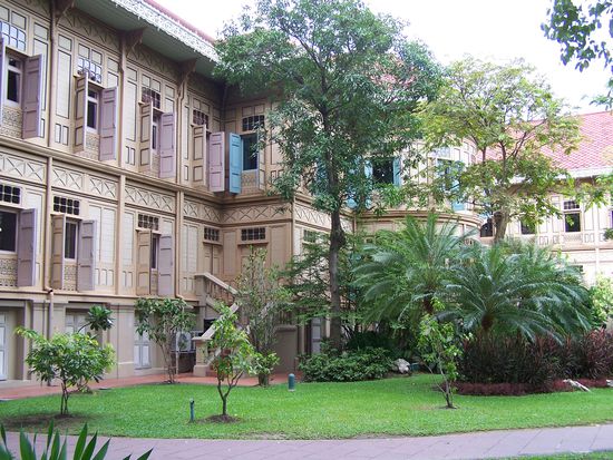 Die Thai kassierte wohl ihre Provision und verabschiedete sich. Der Fahrer setzte mich am Teakwood-Palast ab, einer der letzten weißen Flecke meines persönlichen Bangkok-Stadtplans.