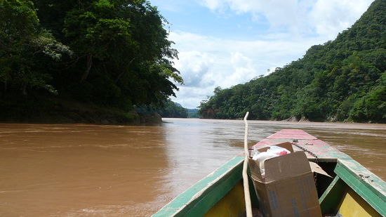 Drei Stunden braucht das Kanu bis zu unserem Camp Merida. Mit mir dabei zwei Englaender(die Aermsten haben nur 12 Monate fuer ihren Urlaub) unser Guia Turista Many und der Koch. das Wetter verspricht einiges der Fluss wechselt immer wieder sein Gesicht, von ruhigem Dahinfliessen bis zu kraeftigen Stromschnellen. Eine gute Stunde Schlaf beschert mir den kraeftigsten Sonnenbrand seit Kindertagen. Die Flussufer werden haupsaechlich von voellig unzugaenglicher Vegetation gesaeumt. Die einzigen die Die Ruhe hier stoeren sind ab und zu ueber uns hinwegziehende Papageien, die dabei einen ohrenbeteubenden Krach machen(Die Papagaeien sehen das natuerlich genau anders rum).