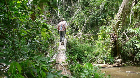 Wenn weit und breit kein Baum zu sehen ist, der den Weg uebers Wasser erleichter, machts natuerlich auch die Liane. Das klappt meistens auch ganz gut...........
