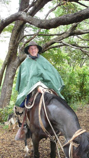 schon besser zu verstehen, meine Reitlehrerin Steffi aus Muenchen, hier mit Manuel dem Faehrtenleser........