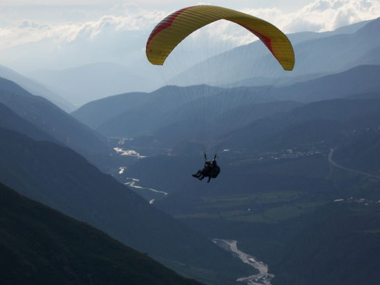 Damit das nicht auch noch wegen eventuellem Schlechtwetter am Donnerstag zum Opfer fällt, machen wir trotz der jetzt miesen Stimmung gleich den Gleitschirm-Tandemflug.