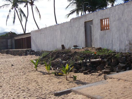 Aus Verzweiflung machen wir einen Strandspaziergang nach rechts ca. 2-3km bis zum Dorf. Vorsichtshalber nehmen wir nichts Wertvolles mit und es passiert auch nichts. Der allgegenwärtige Dreck und die ungefilterten LKW-Abgase treiben uns aber wieder zurück.