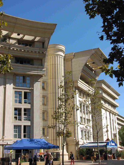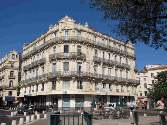 Moderne Architektur kann man im Neubauviertel 'Antigone' bewundern: Eine über 2 km lange Prachtstrasse mit Sozialwohnungen - in Skelettbauweise erstellt, wie manch tristes Stadtviertel anderer Städte - diesmal aber mit viel Aufwand an 'antiken' Motive 'verziert'.
