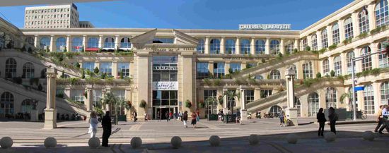 Gleichen Weges zurück zur Place de la Comédie und man ist wieder auf einer französischen Prachtstrasse mit eben solchen Bauten - wie Opera und Kaufhäusern.