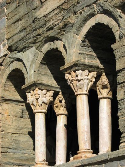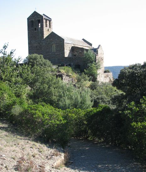 Wieder müssen wir einmal zu einem Kleinod in die Einsamkeit fahren und laufen. Die Prioratskirche (11. und 12. Jh.) von Serabonne liegt versteckt und einsam in den Hügeln der Aspres. Äußerlich schlicht und in grauen Schiefergestein düster, kann man kaum erahnen, was einen an Pracht im Innenraum erwartet.