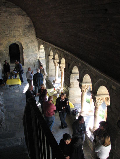 Im weitgehend schmucklosen Kirchenschiff ist eine Ausstellung von Bildern, zu der in der Südgalerie gerade bei unserem Besuch die Vernissage stattfindet. Wir erhalten gratis Eintritt - an der üblichen Bewirtung können wir natürlich nicht teilnehmen.