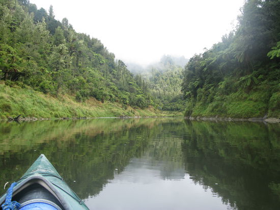 Naechsten Tag, so um mittag werden wir, zwei Australier und ich nach Whakakoro gefahren, eine komplett abgelegene Gegend, nur Busch und halt der Fluss. Ich mache die Dreitagstour bis Pipiriki, sollten 84km sein. Schon nach ein paar Minuten machen die beiden Aussies Pause, die sind ja auch vier Tage unterwegs und haben desshalb mehr Zeit.