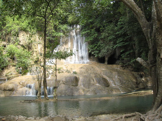 Nach einem Lunch in einem Hausboot am Fluss (lecker Essen) sind wir zu einem Wasserfall gefahren. Haette dort gern ein bisschen gebadet, leider gab's nur 30 Min. Aufenthalt.