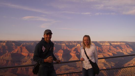 Heute morgen gings dann in einer Monsterfahrt (350 Kilometer durch die Wueste) bis zum Suedeingang des Grand Canyon. Wir habe gerade noch einen kurzen Abstecher zu einem Aussichtspunkt unternommen:
