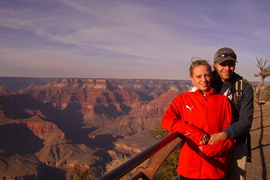 Howdy aus dem Internet Cafe in Tusayan, Arizona. Wir kommen gerade retour von einem wunderschoenen Tag den wir im Grand Canyon National Park verbracht haben. Am Vormittag gings auf einem steilen Weg 400m hinab in den Canyon (bis zum Colorado River waeren es 1400(!) Meter) zur "Cedar Ridge". Auf dem Weg dorthin gab es einige wunderschoene Ausblicke in diese einmalige Landschaft.