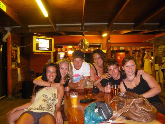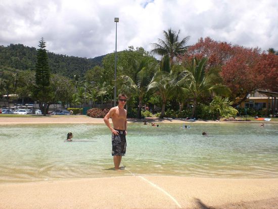 Soo nach 4 stündiger Busfahrt in Airlie Beach angekommen (wie immer sehr gutes Wetter) haben wir uns erstmal nach dem uns empfohlenen Hostel Magnums umgeschaut und auch schnell gefunden da Airlie Beach eigentlich auch nur aus einer großen Straße besteht wo sich alles abspielt. Also eingecheckt in eine 8 Bett Deluxe cabin( kleine Bungalows) für 20 dollar pro Nacht mit Badezimmer, Kühlschrank und Klima A. , is wirklich nen gerechter Preis dafür muss man nebenbei sagen. Die erste Woche waren wir mit 4 Deutschen Mädels in einem Zimmer , mit denen wir dann auch später unter anderem Weihnachten gefeiert haben, aber dazu später. Die anderen 2 Betten die im Zimmer noch frei waren, wurden nach kurzer Zeit immer wieder von anderen Backpackern bewohnt da Airlie Beach für viele nur ein zwischen Stop für die Segeltour zu den Whitsundays ist, also herscht ein kommen und ein gehen. Am 2. Tag haben wir uns dann auch wie verabredet mit den Mädels aus Magnetic wieder getroffen und waren Abends dann zusammen auf deren After Sailing Party. Auf der Party gab es ein Limbo Kontest, den ein Mädchen was wir kannten gewonnen hat und ich den zweiten Platz erziehlen konnte. Sie bekam für den 1. Platz einmal Gratis Paragliding und ich für den 2. Platz Paragliding für den halben Preis.Eigentlich nen cooler Gewinn wenn die Leute von der Paragliding Organisation dann auch am nächsten Tag zum vereinbarten Treffpunkt gekommen wären...Naja shit happens..