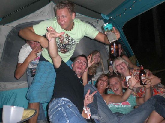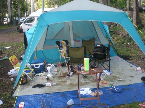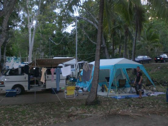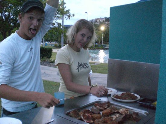 Sylvester stellte sich als erstes kleines Problem auf unserer Reise da. Alle Hostels waren in Airlie Beach und Umgebung über New Year ausgebucht, weil viele Australier auch aus großen Städten wie Brisbane oder auch Sydney in den kleinen Küstenort kamen um dort mal richtig zu feiern. Zum Glück haben wir Gerald aus Wien kennengelernt, der dann auch so nett war und uns sein Zelt für den Jahreswechsel geliehen hat. Ein paar Tage zuvor haben wir noch nen paar Jungs aus Hildesheim kennengelernt, die mit nem Campervan unterwegs sind und direkt neben unserem Hostel ihre Zelte auf dem Campingplätze aufgeschlagen haben. Also kurz nachgefragt ob es Okay wäre und schon stand das Zelt am 31.12.2007. Mit den Jungs haben wir dann auch Sylvester gefeiert, indem wir erst bei Ihnen vorm Zelt nen bischen was tranken und dann mit allen um kurz vor 12 zur Lagune gegangen sind um das Feuerweg zu begutachten. Als wir dann spät nachts heimkamen, war es am regnen und zu unserem Glück ist das Oberdach von unserem Zelt weggeflogen, so dass das ganze Zelt unter Wasser stand. Besseren Start gibts wahrscheinlich garnicht Ich hab dann noch nen bischen länger gemacht und dann einfach morgens mit meinem Handtuch zur Lagune gegangen um dort noch ein wenig Schlaf zu kriegen. Tim hatte etwas mehr Glück und hat einen Unterschlupf bei nem Typen aus Sydney und nem Model aus Holland in ihrem Campervan gekriegt .. War aber alles halb so schlimm und am nächsten Tag haben wir nochmal im Zelt gepennt, diesmal ohne irgendwelche Pannen Wurde jedenfalls erstmal etwas Geld gespart und im Zelt zu schlafen ist auch garnichtmal das schlechteste.
