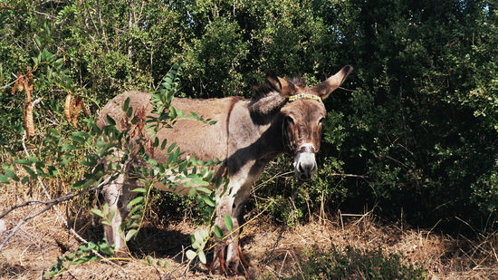 Margrit möchte eine Wanderung ins Bergdorf Theologos unternehmen, um die Gegend kennen zu lernen. Weil wir aber keine Karte mit Distanzangaben haben, schlage ich vor, zuerst das Fahrrad zu nehmen. In Potos biegen wir links ab ins Landesinnere. Die Strasse steigt ständig leicht an und ist nach ca. 15 km vor Theologos sehr steil. Unterwegs treffen wir viel Vieh, Esel und Bergziegen.