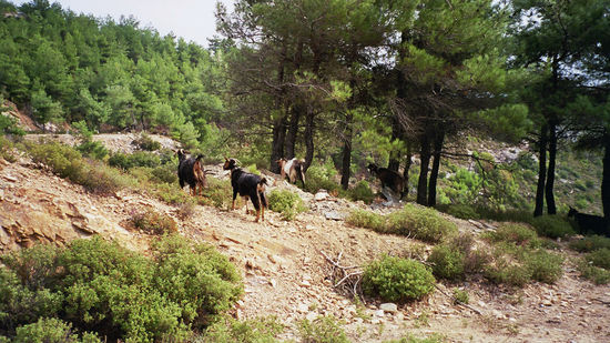 Kaum, nach dem ersten Schluck des kühlen Biers, schwirren Wespen gleich scharen weise um unsere Köpfe. Im Innern des Lokals ist es dann etwas weniger schlimm. Vielleicht , weil eine alte Frau damit beschäftigt ist, Gewürze von getrockneten Stauden abzustreifen. Der Duft verteilte sich im ganzen Raum. Beim gehen werfen wir einen Blick in die Küche, wo sich ein Spiessbraten, vermutlich ein Zicklein, über dem offenen Feuer dreht. Es ist aber noch zu früh für das Mittagessen und so rasen wir mit den Velos wieder ins Tal hinunter und müssen auf der Strecke aufpassen, dass wir nicht mit Ziegen kollidieren.