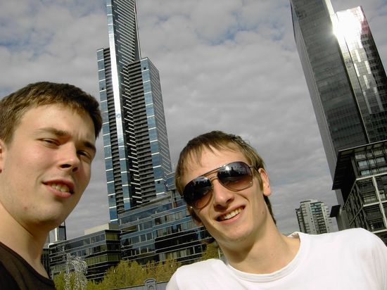 Mit nur rund acht Stunden Verspätung ist mein Kumpel Alex dann in der Nacht zum Dienstag auch endlich hier in Melbourne angekommen. Seitdem machen wir gemeinsame Sache und er zieht den inzwischen ein bisschen reisemüde gewordenen Daniel durch die zweitgrößte Stadt Australiens. Dabei muss man sagen, dass Melbourne genauso gut eine europäische Großstadt sein könnte. Typisch australische Merkmale wie Kängurus oder den roten Wüstensand des "outbacks" findet man in der 3,7-Millionen-Stadt natürlich nicht.