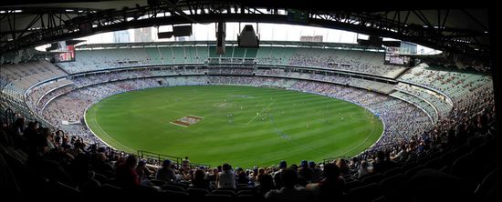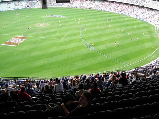 Zwischen dem ausgiebigen Testen verschiedener Bars und Clubs am Wochenende widmeten wir uns dem australischen Football, was mal kaum was mit dem Fußball zu tun hat, den wir kennen. Dank eines sehr einseitigen Matches zwischen North Melbourne und Melbourne und einem nur zu einem Viertel gefülltem Stadion blieb uns das "Aussie football" doch eher als Außenseitersportart in Erinnerung. Eine Mischung aus Rugby, American Football und ein wenig Fußball macht das Spiel für Ausländer nur schwer nachvollziehbar und ohne vorherige Regelkunde zu einem sehr merkwürdig erscheinendem Spiel.