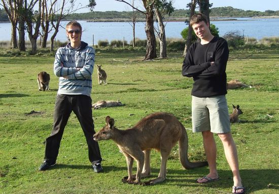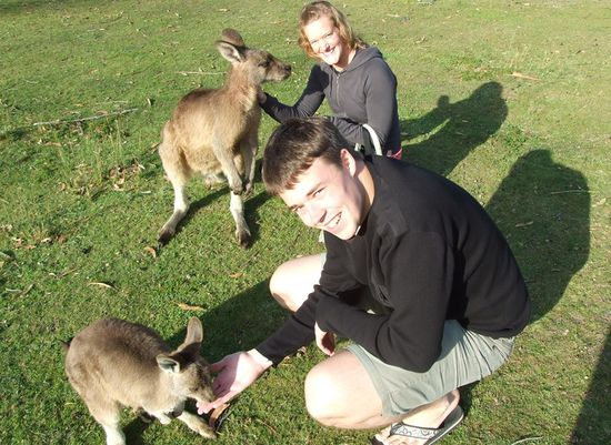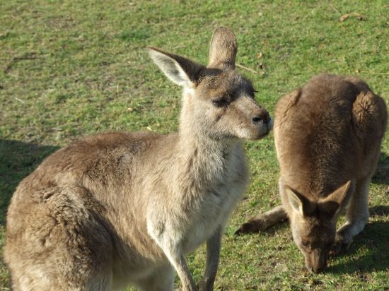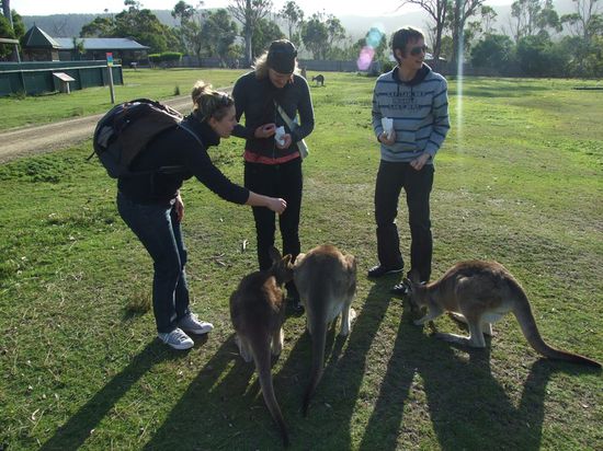 In einem Art Tierpark mit freiherumlaufenden Tieren, habe ich gestern zum ersten mal Kängurus gesehen. Das Futter, das man nen Dollar kaufen kann, müssen sie schon aus weiter Entfernung gerochen haben. Wenige Minuten später waren wir von mehreren Kängurus umgeben.