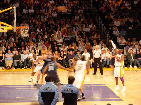 Letztlich sahen die 18.996 Zuschauer und ich ein tolles Basketballspiel, indem die LA Lakers die Utah Jazz mit 109:98 besiegten. Da Utah weniger als 100 Punkte erzielte, erhielten alle Zuschauer am Ausgang von einem Sponsor einen Gutschein über zwei kostenlose Tachos - so war das Versprechen des Sponsors.