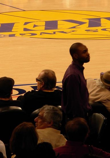 Noch draußen vor dem Staples Center machte mich Anthony insgesamt drei Mal auf irgendwelche bekannten Persönlichkeiten (meist Schauspieler) aufmerksam. Leider kannte ich keinen einzigen davon. Als er mir dann aber im Stadion Jack Nicholson zeigte, zückte ich doch mal die Kamera. Wie mir dann wieder einfiel war er begeisterter Lakers-Fan und bei fast jedem Heimspiel anwesend.