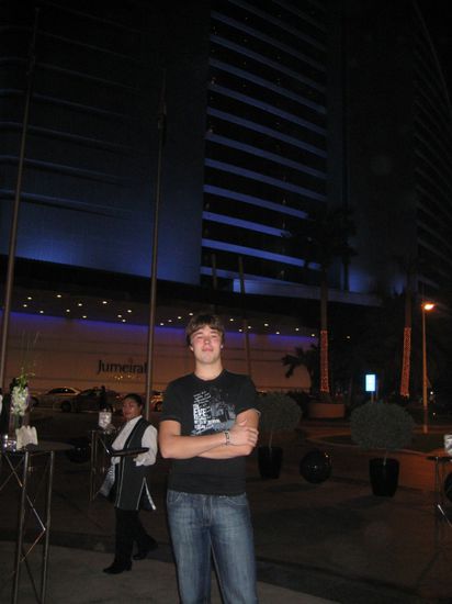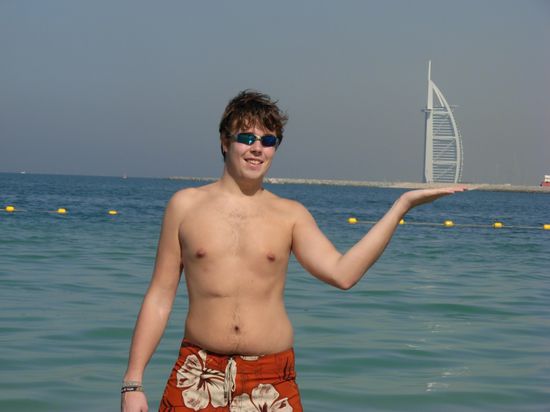 Gut gestärkt stolzierten wir wieder über den roten Teppich (der tatsächlich und nicht nur sprichwörtlich dalag) weg vom Geschehen über die Straße zum "Beach Hotel", das mal eben auch eine kleine Insel aufgeschüttet hat, um dort einen kleinen Club zu errichten. Direkt neben dem Burj Al Arab (dem einzigen Sieben-Sterne-Hotel der Welt) feierten wir also diesen gelungenen Tag.