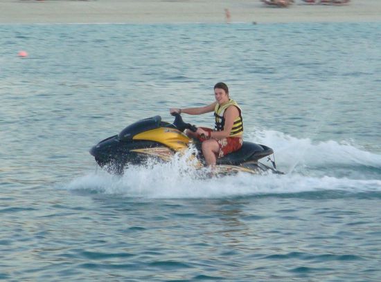 Irgendwo ein paar hundert Meter vor der Küste setzten die beiden Schiff-Angesellten des Inders dann den Anker und man ließ den Jetski zu Wasser.