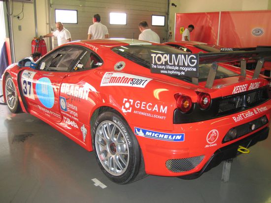 An dem Rennen nahmen auch Deutsche Rennställe und Fahrer teil. War ja irgendwie klar, dass Verena da auch wieder jemand kennen sollte: Das Ferrari-Team Kessel-Racing. Klar, dass wir die meiste Zeit in deren Box verbracht haben.