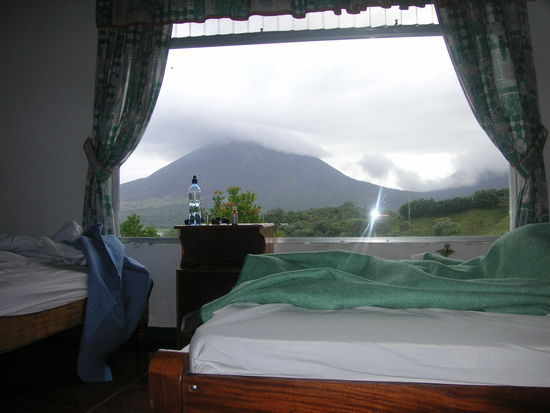 Die Anfahrt ueber einen riesigen Lago war schon beeindruckend. Der Arenal zaehlt zu den aktivsten Mittelamerikas. Wir haben auf der Seite unser Quartier bezogen, wo man nachts, vorausgesetzt die Wolken verschwinden, den Berg Lava spucken sehen kann. So gegen 5 Uhr frue konnten wir dann durch unser Panoramafenster die Lava sehen. Ist schon eine coole Geschichte.