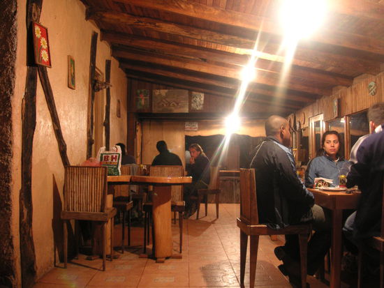 In Dunkelheit und Nebel und Regen auf den Berg (2500m hoch) und dort auch eine Cabinas wie beim Alm-Oehi gefunden, auch so schweinekalt. Mit Kamin ( Feuerstelle) und solchen schoenen Sachen. Wir haben die ganze Nacht gefroren, aber der Ausblick ist genial auf das Valle Central inkl. Hauptstadt.