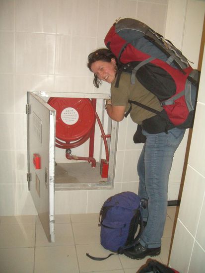 Der Typ von der Gebäude-Security lässt und dann auch anstandslos rein und wir fahren mit dem Aufzug in den x. Stock. Im Feuerlöscherkasten neben Geoffs Wohnungstür finden wir dann auch den Wohnungsschlüssel angeklebt. Geoff hat uns also nicht vergessen und den Schlüssel deponiert!!!