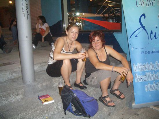 Jacqi hat sich zwischenzeitlich mit ihren neuen Sandalen Blasen gelaufen. Also kaufen wir noch Pflaster für Jacqis Füße und suchen vergebens einen Buchladen (wir brauchen dringend noch Infos über den Mac Lehose Trail den wir laufen wollen ...). Mit der KCR-Rail geht's dann zurück nach Mong Kok. Wir laufen durch den Ladies Market .... es hat sich nix verändert, gibt immer noch die gleichen Dinge wie vor zwei Jahren! Petra ersteht ihre erste Tasche und Jacqi kauft zwei "Chinesenkleider" für den nächsten Fasching. Wir trinken noch was bei Starbucks und fahren dann mit der Metro nach Central.