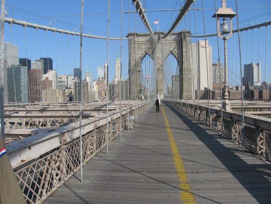 Da hier aber doch ein sehr kalter Wind pfeift und mein Bedarf an Musik gedeckt ist, nutze ich die U-Bahn Station an der High Street als Heizung, denn in den U-Bahnhöfen von New York steht zu jeder Tages- und Nachtzeit irgendwie die Hitze. Nachteil der Aktion: Ich bin ein wenig zu spät zurück auf der Brücke.