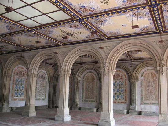 An der Unterführung am Bethesda Fountain werden gerade die Fresken an der Decke und die Gemälde an den Wänden restauriert und gereinigt. Es sieht wunderschön aus, nur frage ich mich allen Ernstes, ob sich die Mühe lohnt, denn ich sehe keine Gitter, die zu nächtlicher Stunde Sprayer und andere Anti-Künstler von der Verunstaltung dieser Werke abhält.