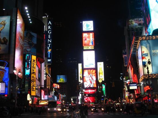 Bevor es zurück in meinen kleinen Knast geht, versuche ich noch am Times Square ein paar Fotos zu machen, doch der Platz ist einfach zu hell. Also kürzere Belichtungszeiten, doch so bekommt man die schönen von Schlusslichtern gebildeten Streifen nicht hin. Dann halt nicht.