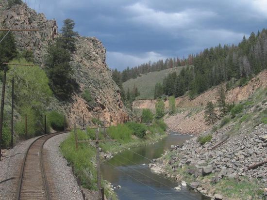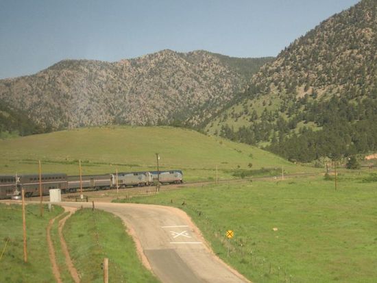 Nach Denver verziehe ich mich zu einer Runde Frühstück in den Speisewagen und freue mich anschließend auf die Eroberung der Rocky Mountains. In mehreren Kehren schrauben wir uns den Berg hinauf. Wie bereits erwähnt, mein Abteil befindet sich im letzten Wagen, also habe ich zumindest in Rechtskurven eine perfekte Sicht auf den Zug in der Landschaft.