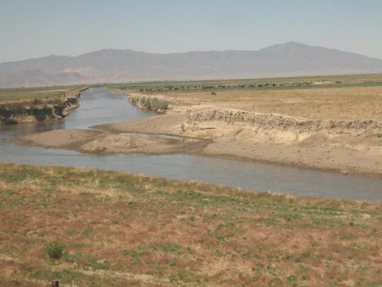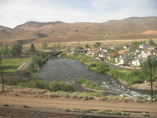 Die Landschaft vor dem Fenster hat sich stark verändert. Wir durchqueren nun die Wüste Nevadas. Zwar sind noch immer keine roten Steine zu sehen, für die Hinz und Kunz in den Südwesten aufbricht, sondern dieser Teil der Wüste überzeugt durch andere Details. Begrenzt durch braune Berge rechts und links fahren wir durch ein weites Tal, durch das überraschenderweise sogar ein kleiner Fluss fließt. An dessen Ufer gedeihen die schönsten Pflanzen, doch etwa 5 Meter davon entfernt setzt sich der sandige Boden wieder durch. Sand, soweit das Auge reicht. Zeit, hier eine kleine Sanduhrenfabrik zu bauen. Rohstoffe liegen genügend vor der Haustür.