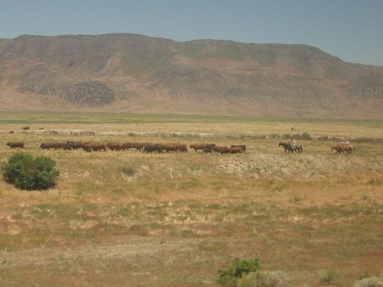 Bestandsaufnahme: Uhr - zeigt die falsche Zeit an, wir sind wieder in der nächsten Zeitzone, also wieder eine Stunde mehr Zeit zum Schlafen gehabt. Daran könnte ich mich gewöhnen. Was noch? Wüste! Wir scheinen aus Colorado heraus zu sein. Fahrplan? Ja, vorhanden zur Dekoration. Laut diesem sollten wir Winnemucca, Nevada, schon längst hinter uns gelassen haben. Rechnet man die wahrscheinliche Verspätung mit ein, müssten wir gerade in der Gegend um Elko, Nevada sein. Wo ist meine Sekretärin?