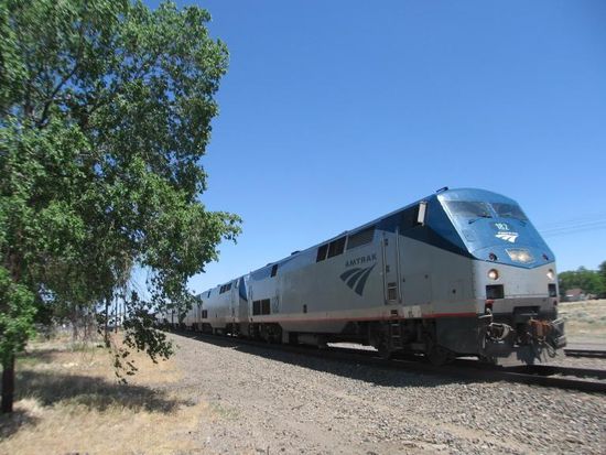 Endlich erreichen wir den nächsten Bahnhof und es ist: Elko. Hier sollten wir um 3:21 Uhr morgens durchkommen. Jetzt ist es fast Mittag. Wir haben nun 8 Stunden Verspätung. Meine abendlichen Pläne für San Francisco kann ich über den Haufen werfen. Ich hoffte, wenigstens noch ein wenig die Füße vertreten zu können, doch jetzt muss ich ja heilfroh sein, wenn wir überhaupt im Hellen noch über den Donner Pass kommen.