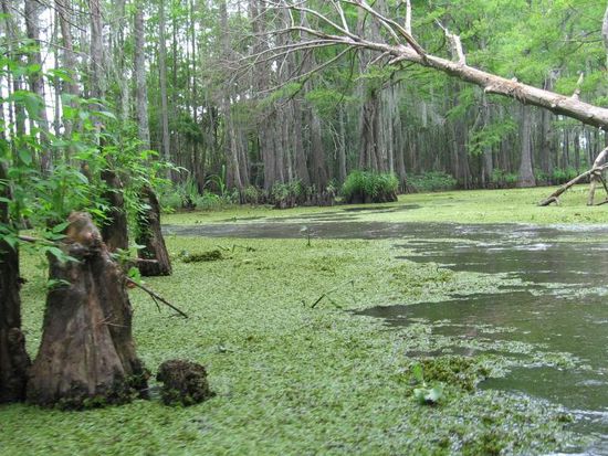 Ich schleppe mich auf die Straße, wo ich nach 2 Schritten schon wieder schwitze. Das Klima hier nervt. Quer durch das French Quarter steuere ich auf's Visitor Center zu, wo ich eine Tour hinaus in die Sümpfe vor den Toren New Orleans buche. Keine 5 Minuten später werde ich auch schon abgeholt. Ich habe Glück, kann ich doch kurzfristig noch bei einer Tour mit, wo gerade erst angefangen wurde, die Leute einzusammeln.