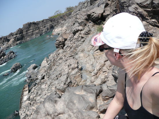 Belohnt wurden wir mit einem grandiosen Spektakel, was so ein maechtiger Fall zu bieten hat. Wir verbringen dort einige Zeit und klettern auf den bizarren und tief ausgewaschenen Felsen herum. Wir finden den kleinen Sandstrand, man koennte auch baden gehen, wir lassen das aber an dieser Stelle lieber bleiben, da die Stroemungen zu stark sind.