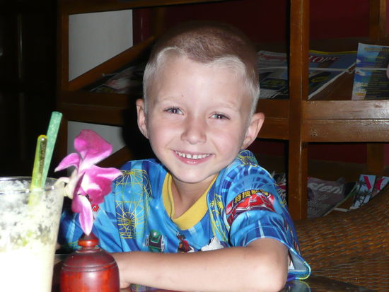 Manfred und Paul kommen vom Friseur zurueck und er hat es woertlich genommen, als ich gesagt habe, alles schoen kurz, den Nacken kann man auch bisschen hochrasieren. Den Blick, welchen ich allerdings hatte, als ich mein Kind erblickte, haette man eigentlich im Bild einfrieren muessen - starr vor Entsetzung, ja fassungslos!!! Doch nicht soooooooooo kurz!!!!!! Paul sieht jetzt seinem Freund Oli sehr aehnlich, es fehlen nur noch die Taetowierungen und das Ziegenbaertchen. Kurzzeitig haengt deswegen der Haussegen schief, ich beruhige mich aber schnell wieder, es waechst ja wieder nach!