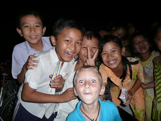 Unseren Drink nehmen wir an einem Strassencafe und Paul zieht magisch Kinder an. Binnen kuerzester Zeit sind 15 Kinder um uns herum. Paul zeigt all seine Kunststuecke, welche er auf Lager hat und ich zeige meinem einzigsten Zaubertrick, welchen ich auf Lager habe, werde allerdings von einem kleinen scharfen Aufpasser schnell entlarvt. Mist! Ein riessiges Geschrei ist hier geboten.