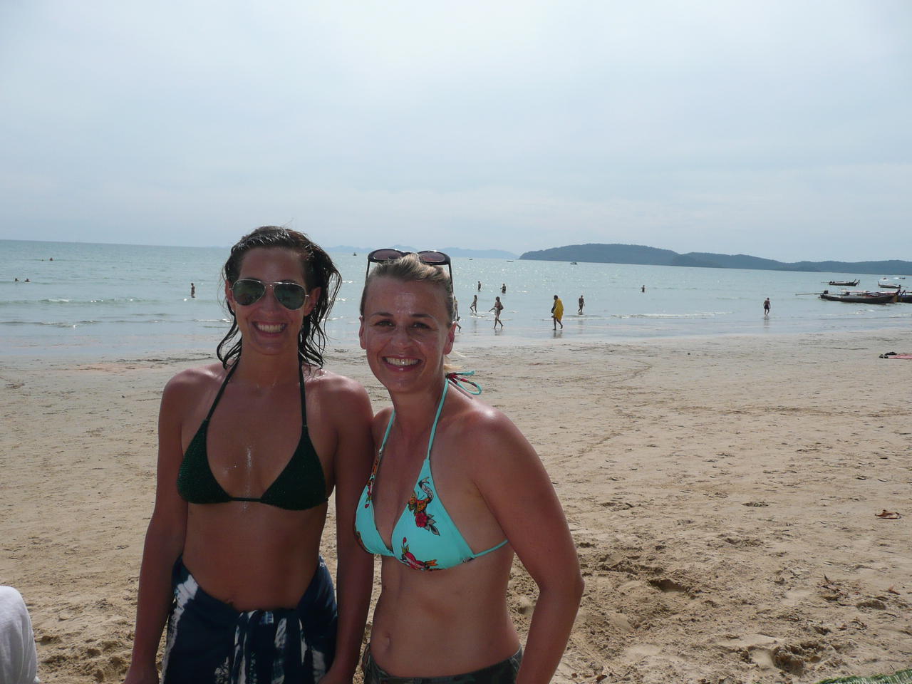 Mit dem Moped fahren wir Richtung Ao Nang Bay, aber was unser Auge entdeckt, ist Neckermanntourismus, Massentourismus pur. Ein Handtuch neben dem anderen, der Strand bretthart getreten - nichts Schoenes mehr. (@Jasmin & Thomas: bestimmt nicht mehr das, wie ihr es vor Jahren kennengelernt habt!) Wir legen uns trotzdem hin, dort wo es Kinder hat und Paul findet sofort Noah aus Wien zum Spielen. Hier bleiben wir aber auf keinen Fall, das heisst, wir werden hier kein Zimmer suchen. Die Ortschaft haesslich zugebaut, ein Hotel neben dem anderen, ein Souveniershop gleicht dem anderen, Restaurants, Bars komprimiert auf Briefmarkengroesse um den Strand herum. Wir schauen uns mal noch andere Straende an und haengen schon wieder ueber dem Reisefuehrer, was als naechstes, oder welche Inseln in Frage kommen.