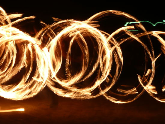 Mehr gibt es nicht zu berichten ueber die zwei Naechte. Wir haben schon am 2 km langen Strand gelegen, welcher zwar besucht, aber nicht zugepflastert war. Der Strand hat weichen, sauberen, hellgrauen Sand, das Wasser ist glasklar und selbst bei Ebbe ist Baden moeglich. Abendessen waren wir einmal im Seafood Restaurant in Baan Saladan (aufgemacht wie die Restaurants in Hua Hin) und einmal bei den einheimischen BBQ. Die Drinks haben wir abends am Strand getrunken, bei Lagerfeuer und Fackelshow.