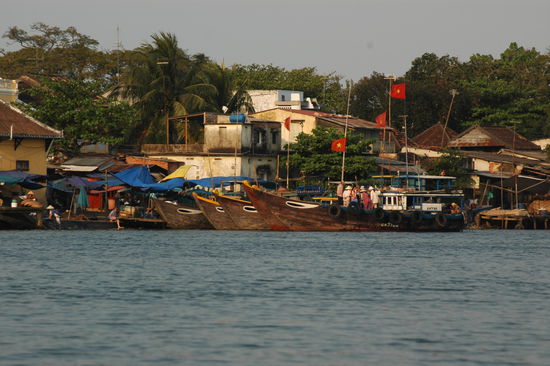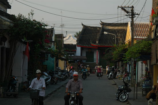 Hoi An, das vorneweg, versoehnt uns mit Vietnam. Die Stadt ist ein pittoreskes begehbares Museum und als Weltkulturerbe deklariert. Vom 15. bis ins spaete 19. Jahrhundert war Hoi An ein wichtiger Umschlagplatz im internationalen Seehandel und fuehrte insbesondere chinesische und japanische aber auch indische, philippinische, indonesische, thailaendische sowie hollaendische, portugiesische, spanische, franzoesische, britische und spaeter auch amerikanische Kaufleute in die Stadt. Solange die oertlich vorherrschenden Winde einzige Antriebskraft waren, kamen Chinesen und Japaner im Fruehjahr mit dem Nordost-Monsun, um bis zum Sommer zu bleiben und dank suedlicher Winde nach Hause geblasen zu werden.