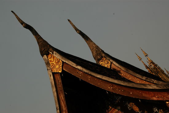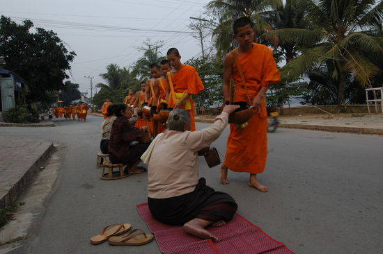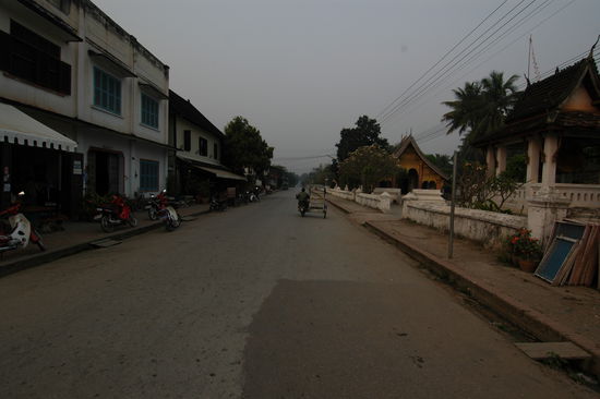 Die letzten Kilometer nach Luang Prabang sind gnaedigerweise flach, und wir reiten am Ende unserer Leidensfaehigkeit angelangt aber um so stolzer am spaeten Nachmittag in Luang Prabang ein. Gezielt suchen wir das Quartier unseres letzten Aufenthaltes in 2003 auf ("Sayo"-Guest House), das aber leider vollstaendig belegt ist, so dass wir im Nachbarhaus ein Zimmer beziehen.