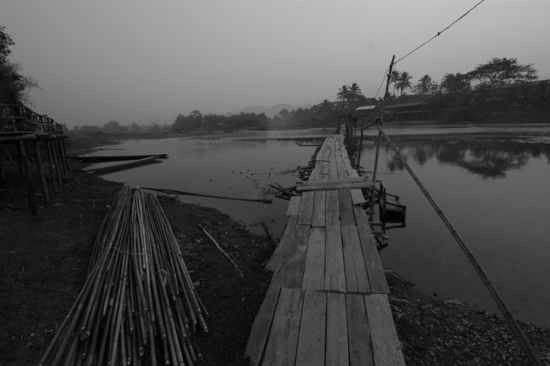 [An dieser Stelle sei entschuldigt, dass unsere Fotoausbeute waehrend des Motorradfahrens die Reize der Landschaft nur unzureichend wiedergibt: die unabdingbare Konzentration auf das Fahren laesst das fotografische Auge nicht erwachen, und staendiges Anhalten verbietet sich ob des Zwanges, den erforderlichen Stundenschnitt zur Erreichung von Luang Prabang bei Tageslicht zu gewaehrleisten.]
