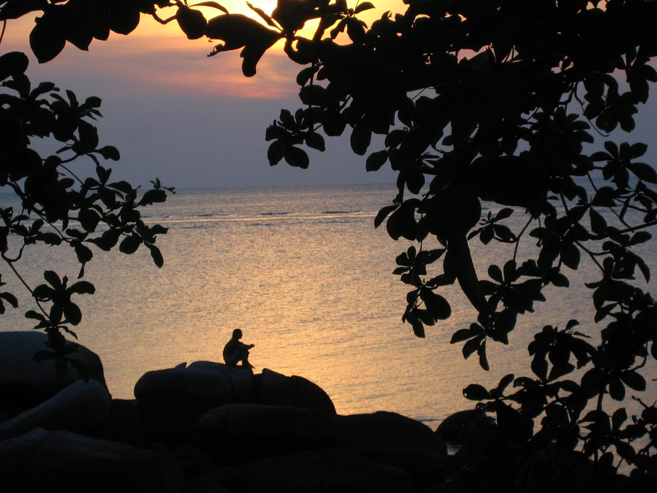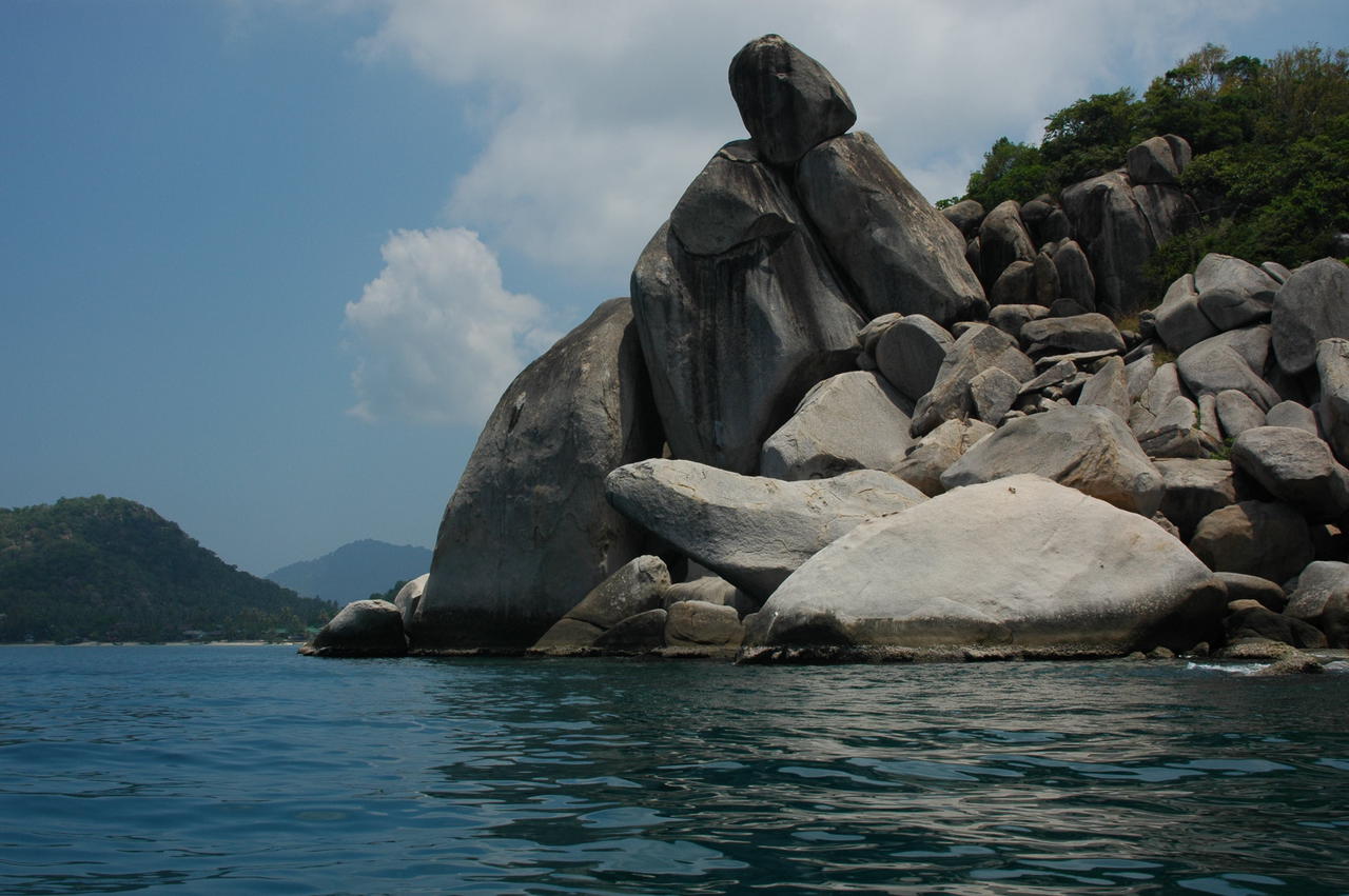 Dann ist der Weg frei. Strand, Meer, Ko Tao. Schon nach wenigen Minuten auf der Insel ist unabweisbar, welch Notbehelf der Strand in Mui Ne in Vietnam war. Hier endlich umfaengt uns wieder der Zauber tropischer Palmenstraende, giftig-tuerkisfarbenen Wassers und surrealer Unterwasserwelten, durchsetzt mit sehr entspannt gestalteten Resorts, Bars und Restaurants, wie man es in Asien ausser in Thailand vielleicht noch auf den Philippinen finden kann. Wisse Reisender, suchst Du am Meer gewisses Flair, komm' aus Vietnam gleich nach Thailand her. Ko Tao, die "Schildkroeteninsel", ist (wie die allermeisten der nicht so zahlreichen thailaendischen Inseln) keine einsame Insel mit der einsamen Huette am Strand mehr und hat den Status eines Geheimtips lange verloren. Vielmehr ist die durch bizarre Ueber- und Unterwasserfelsformationen chararkterisierte Insel mittlerweile ein stark frequentiertes Ziel des Tauchtourismus. Waere allerdings auch ein Wunder, bliebe solch Schoenheit und Atmosphaere unentdeckt. Dennoch ist, zumindestens jetzt im sehr heissen Maerz und April, die Besucherdichte moderat und jeder kann, so Gespuer und ein kleines bisschen Glueck vorhanden, einen Traumplatz finden. Wir landen, wie so manches Mal durch unsichtbare Hand gelenkt, im israelisch gefuehrten "Sai Thong-Resort", beziehen eine voluminoese "Sea-View"-Huette, schwimmen in kristallklarem Wasser von Fischen umzingelt, schnorcheln (und sehen Haie!), doesen, lesen, lernen sehr nette Leute aus Deutschland, Kanada und Israel kennen, werden unweigerlich knackig braun und lassen unsere bisherige Reise Revue passieren.