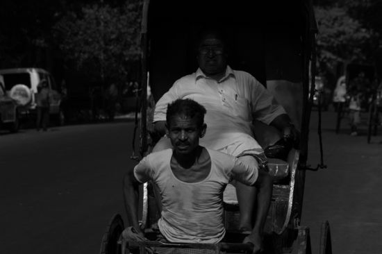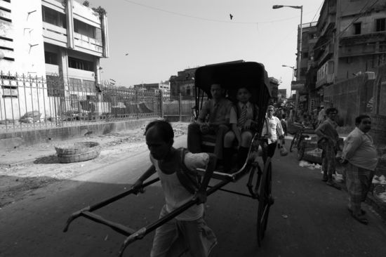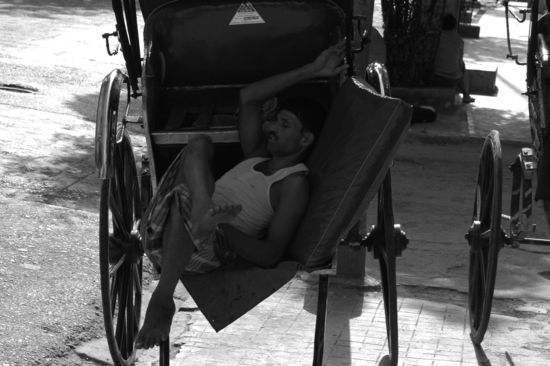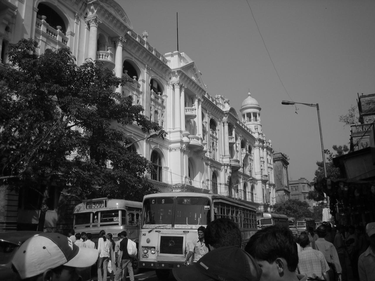 Soweit die rationale Betrachtung. Dann aber ist man selbst wieder dort und ist wieder aufs Neue ueberwaeltigt. Das ist er wieder, der unbeschreibliche Indiengeruch (ein angenehmer ...), die unverwechselbare Schlagermusik (maedchenhaft hohe, fast schrille Frauenstimmen), alles stroemt schon nach wenigen Kilometern stadteinwaerts durch das Taxifenster. Wir naehern uns vom Flughafen kommend dem ganz normalen Irrsinn einer indischen Megastadt. Kalkutta hat mindestens 13 Millionen Einwohner und traditionell (aber unverdient, denn es gibt Bombay!) den Ruf der schmutzigsten, der schrecklichsten, der elendsten Stadt Indiens. Als der Autor 1982 bereits einmal hier war, lebten eine halbe Million Menschen auf der Strasse, die Buergersteige waren nachts dicht an dicht mit Menschenleibern gepflastert. Auch wenn dies zumindestens in solchem Ausmass nicht mehr der Fall ist, ist Kalkutta dennoch weiterhin wie eine archaische Urgewalt: riesige Gebaeudekomplexe noch aus Zeiten der britischen Kolonialherrschaft, deren Substanz in einer Weise verwittert und von tropischer Vegetation durchdrungen sind, dass sie nicht von Menschenhand erbaut sondern von der Natur selbst erschaffen scheinen. Dazwischen menschliche Existenzformen, die kein Europaeer sich je ausdenken koennte: Menschen, die in Gebilden aus Sackleinen und Plastikplanen auf Verkehrsinseln leben (leben! immer!!), Rikschas, von Barfuessigen durch die Strassen gezogen und deren einzigen Besitz darstellend (sie schlafen unter der Rikscha am Strassenrand, sie essen dort, sie waschen sich dort), "Laeden", nicht viel groesser als Reisekoffer, aber dennoch gleichzeitig auch Behausung des Besitzers.