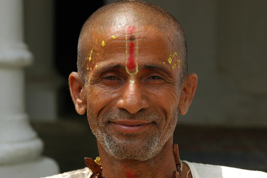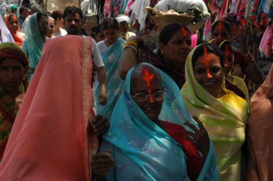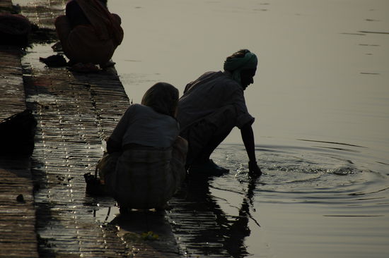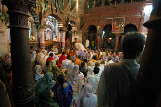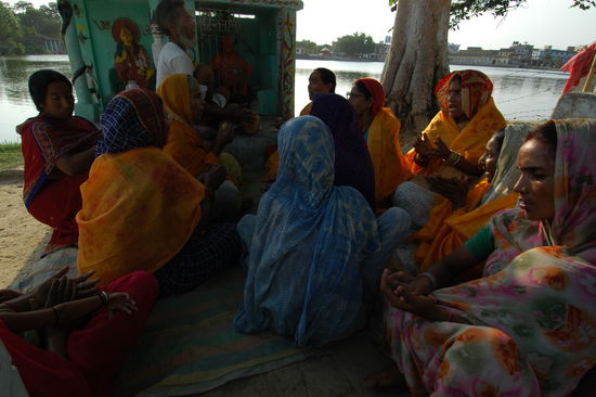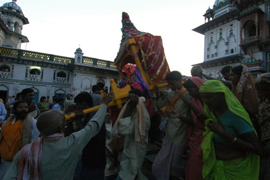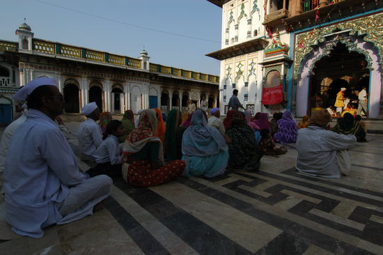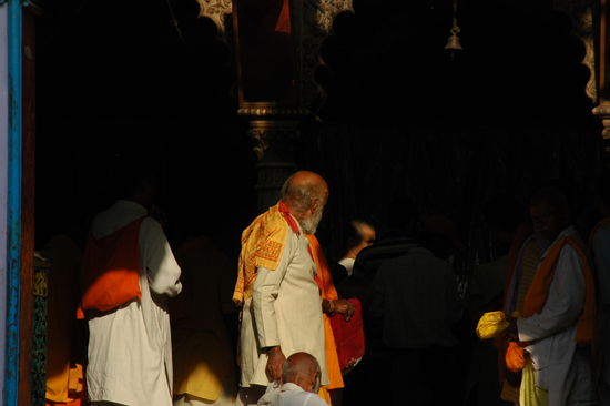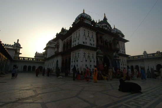Wegen des Ramayana ist Janakpur bis in die Jetztzeit ein wichtiger Pilgerort der Hinduisten und beheimatet zahlreiche Tempel und kleine Badeseen, in dem sich einst die Goetter wuschen und nun das glaeubige Volk. Wir wohnen im Hotel Welcome, wo wir tatsaechlich aufs waermste willkommen sind als die einzigen nichthinduistischen Touristen in der ganzen Stadt. Entsprechend werden wir ueberall bestaunt. Obwohl in Nepal fuehlt sich Janakpur an wie Indien, das nur wenige Kilometer suedlich beginnt. Quietschbunte Saris, Prozessionen, Saddhus (hinduistische Wanderasketen) allerorten. Sakrales Epizentrum der Stadt ist der Janaki-Tempel, der Ueberlieferung zufolge errichtet an eben der Stelle, wo Koenig Janak einst das Sitakind fand in den Furchen eines gepfluegten Feldes. Der Tempel, indisch-barock, ist von ueberraschender Groesse wenn er ploetzlich und unvermittelt auftaucht aus dem engen Gassengewirr Janakpurs. Zu verschiedenen Tageszeiten besuchen wir ihn und bestaunen andaechtig das inbruenstige Gebaren der Glaeubigen. Mukus sacralis (heilige Kuehe) umwandern stoisch den Tempel und weihen den heissen Marmorboden mit heiligem Pipi, ein kostbares Nass offensichtlich. Wir beobachten (leicht befremdet, zugegeben) eine festlich gekleidete Pilgerin, die entschlossen ihre rechte Hand in den einer Kuh rektal entstroemenden Schwall taucht und sich mit den empfangenen Tropfen Haupt und Habitus benetzt. Irritierendes Rindvieh-Ritual, schon. Aber von wildgewordenen Stieren durch die Gassen von Pamplona gejagt um sein Leben zu rennen ist rational auch nur schwer erklaerbar im aufgeklaerten Europa.
